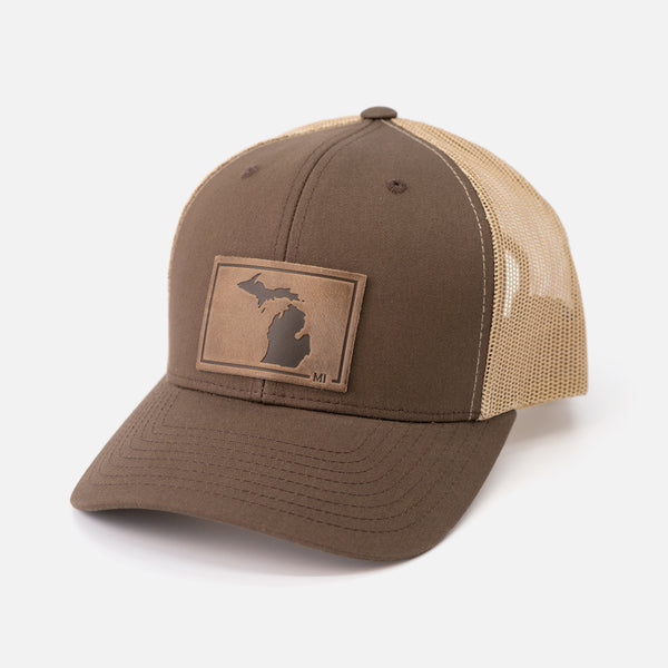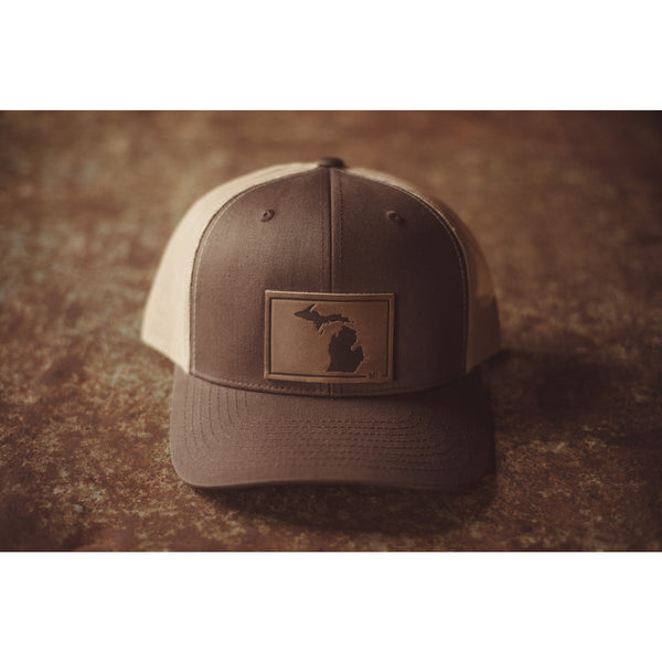 Range's Michigan Silhouette Hat features the outline and initials of the state, in a simple, classy design -- heat stamped into full grain Horween leather.